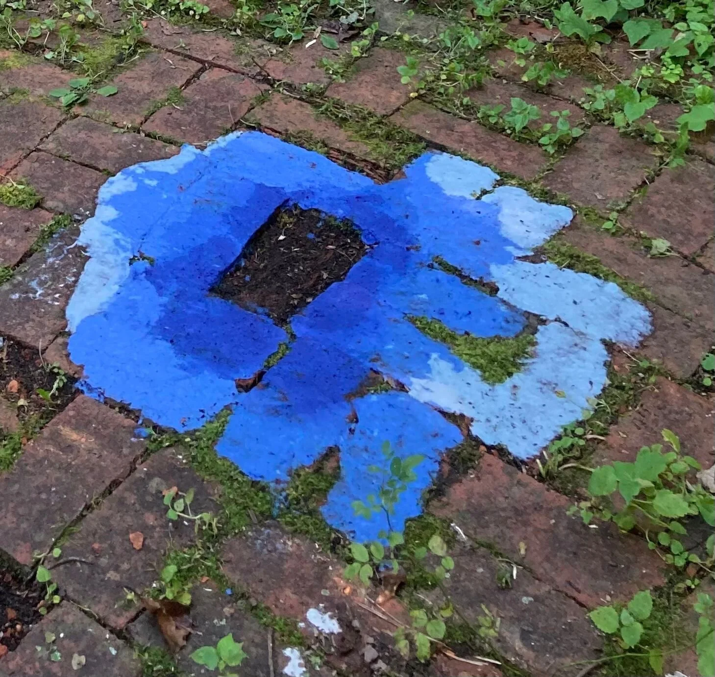 And, it did, but it was a language that was much more subtle that I’d imagined. While the phrase “litmus test” indicates definitive results, working with this lichen dye yielded a beautiful spectrum of indeterminacy. The colors changed continuously. A blender full of deep blue pulp might become bright purple with the addition of rainwater, but then turn blue again the next time the same bucket of water was added to the mix. An area of purple on a concrete retaining wall might go red for a moment, and then dry blue.