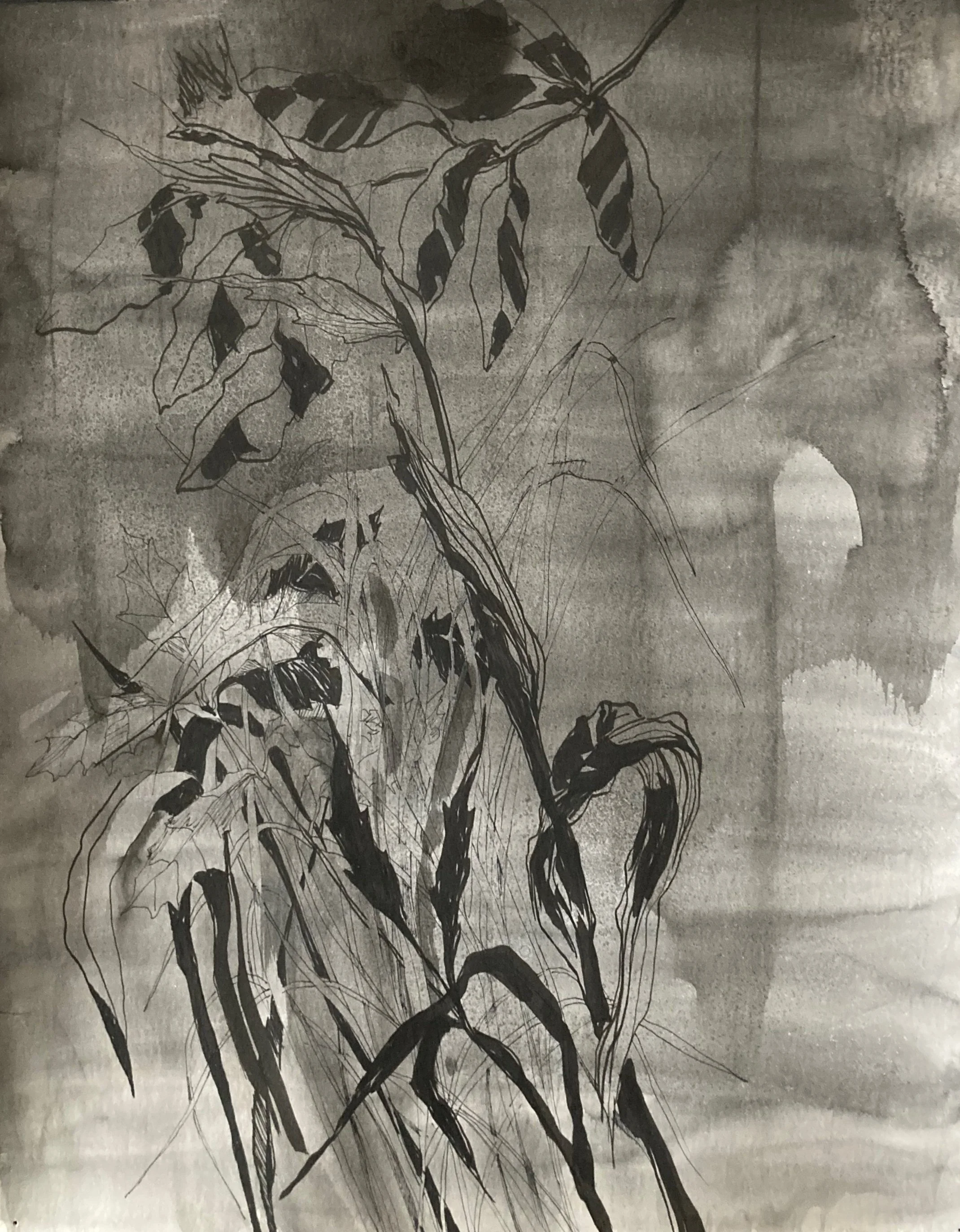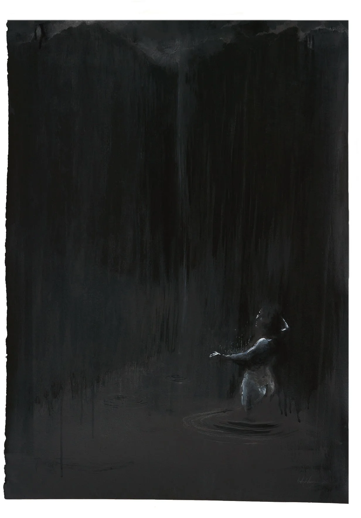 Night Rain II, 2021. 26”x32”, mixed media on paper
